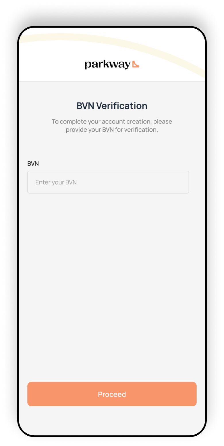 Launch the downloaded application, tap the "Create account" button, input your BVN and validate the BVN information provided.